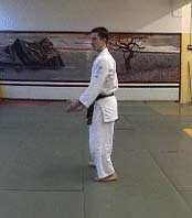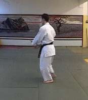 1.И.П.Миги (или хидари) камаэ. "Передняя" нога перпендикулярна полу, "задняя" нога прямая. Центр тяжести расположен ближе к передней ноге.Руки находятся среднем положении ("передняя" рука на уровне солнечного сплетения, "задняя" - на уровне пояса). |